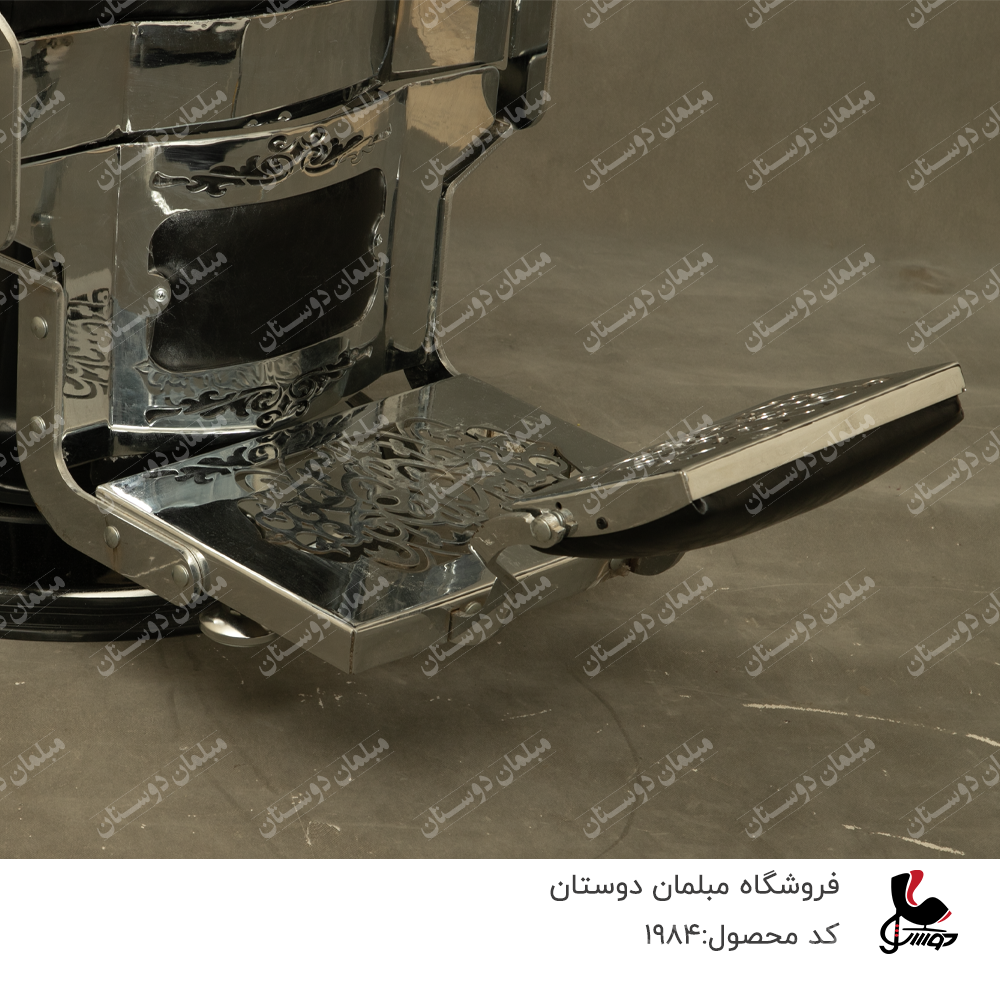 پایههای صندلی بهصورت سینی استیل طراحیشده است که از جنس فلز بوده و با روکش استیل کروم آبکاری شده است. برای محافظت این پایه در برابر سایش و زنگزدگی از یک روکش کرومی استفادهشده است که این پایه را در برابر تغییرات مقاوم ساخته است.
