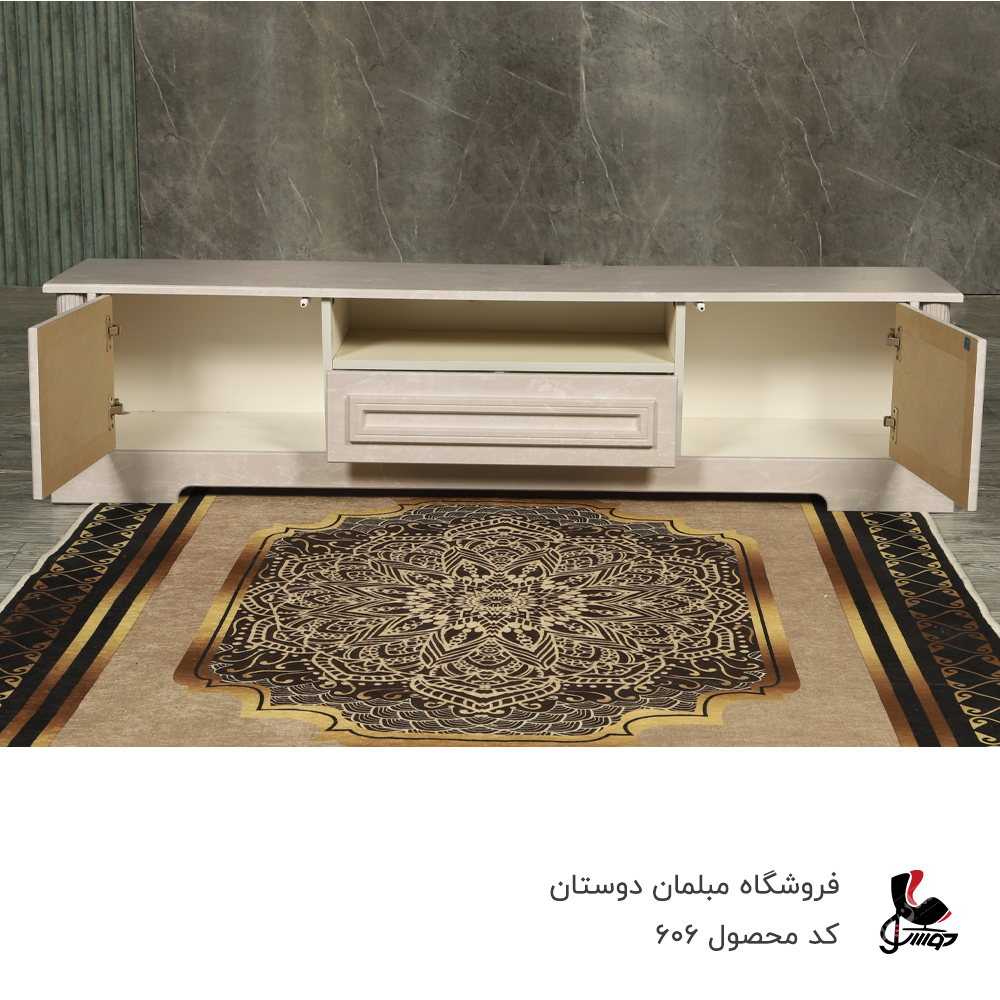 جنس بدنه این میز تلویزیون ام دی اف و روکش آن وکیوم است .